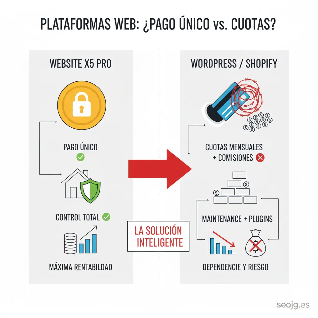 WebSite X5 Pro vs. WordPress/Shopify: El Debate Honesto sobre el Pago Único y la Tranquilidad
